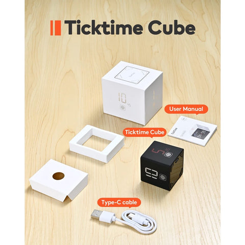 Ticktime Cube Pomodoro Timer, Magnetic Productivity Timer, Mute, Vibration & Adjustable Sound Alert, Pause & Resume