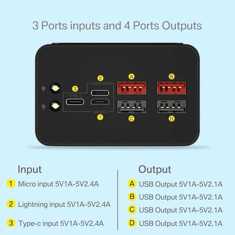 60000mAh powerbank fast charging With 4 USB 3 inputs Portable charger power bank 20000mah